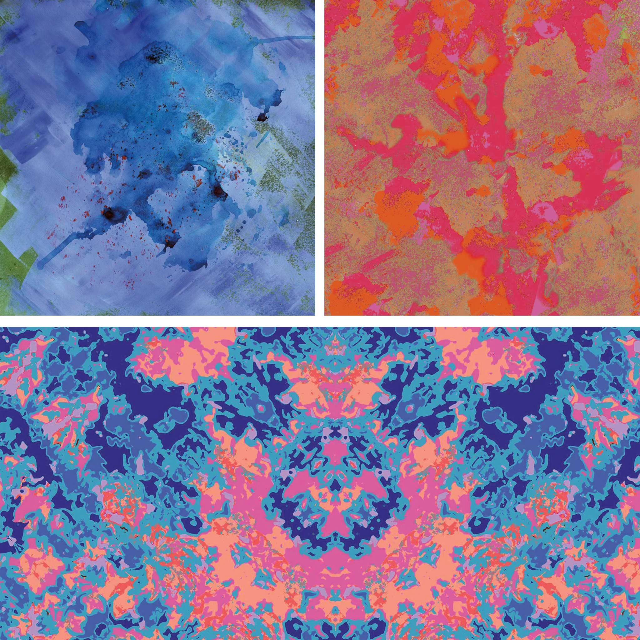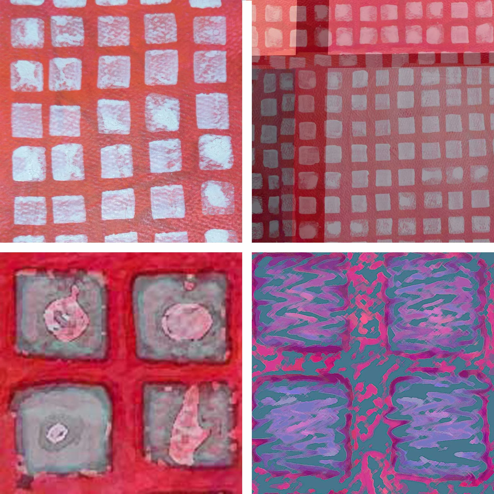 My teacher and good friend Caryl St. Ama nominated me to participate in the art challenge on Facebook. (Post 3 of your works a day over five consecutive days; tag your challenger so that it posts on their page; and tag someone whose art you admire so that they can also take part in the challenge!) Here are the five days of images I posted. They all show the process I use scanning my original paintings into Photoshop and filtering and layering them into new repeatable patterns. You can see the individual posts and descriptions on my Facebook Page where I share links to articles on museums, artists, calls for entry and artistic processes (no cute cat photos!) . Like my page to see what I share!